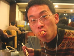 好佳在今天不是我請客,更後悔找大肚魚一起來吃飯,看他們兩個人聊天聊到現場講起他們在MSN上聊天的趣事,我就只能默默的吃著我的小蝦蝦…他媽的…臭大肚魚…跟著Kight Lover一起叫我小立子叔叔的表情讓我超想打人…