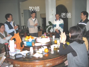 教會的執事與牧師到家裡來替老爸慶生,圖左就是貨真價實的牧師哦!!
