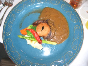 星期天中午,我點的鵝肝菲力牛排,那個醬汁看起來真像是昨晚廚師吃壞肚子的結果…